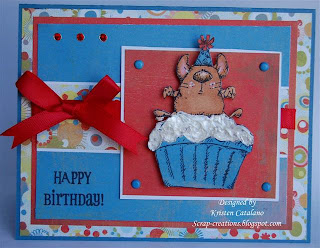 OOhhh such a cute stamp set with the cup cake and mouse...The BG paper goes well with this card.