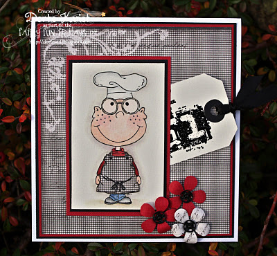 Happy Tuesday! I hope you enjoyed your weekend. Did you do anything FUN??? I have to admit, since the semester has started, my time with my family and for my self has been really limited. I mean REALLY, limited, but this weekend was one of the best weekends I have had in a LONG time. Friday night I hosted a Arbonne party, and the demonstrator was a friend, so it really was a girls night, with a few drinks, great conversation and lots of laughs. Then on Saturday, I spent the day stamping with Mary, Peggy, Pia, Michelle, and Donna, and as always that was SUPER fun.....even with the 11/2 (personal joke), and then Saturday night, Hubby and I went to a Haunted House, and the kids got to spend some time with my parents and some extended family, that was a great evening for all. Then on Sunday, we hosted our annual neighborhood Halloween party, and then we took the kids to our Karate pumpkin tournament, where they got to go trick-or-treating. As you can see, we had a action packed weekend, but a wonderful one, and best of all, I gave myself the weekend off, and I didn't pick up one single book wahoooo.......Ok, I am super excited about this weeks challenge, as it has become my favorite way to create, and no, it's not Halloween (even know if I coud, I would make every card Halloween LOL). This week, we want to see what you can do with your Digis.....Digi image and Digi paper! I know some of you still use rubber, but I have to admit, I am mostly a DIGI girl. I would say that 98% of my images are digi. It is extremely rare, that I will buy a rubber stamp. Why you ask? Well, with so many amazing artist out there sharing there artwork, I can't image being limited to to just rubber stamps. Also, there are so many reason to use Digi: storage, sizing, access ability, not to mention the amount and different styles available. So, not only did I use a Digi image, I also used digi paper. I bet you couldn't even tell it was digi paper! The Digi image I used on my card is from Whimsy and Stars Studio, and the AMAZING paper I used is from Bearly mine, and it was FREE!!!! Now if you take a close look to Mary, Peggy and my card, you will notice that we ALL used the same DIgi paper...hahahaha....and none of knew that each other was using that paper until we all sat together on Saturday and made our cards...LOL, BUT, I bet you didn't even notice, because our cards are all so different!