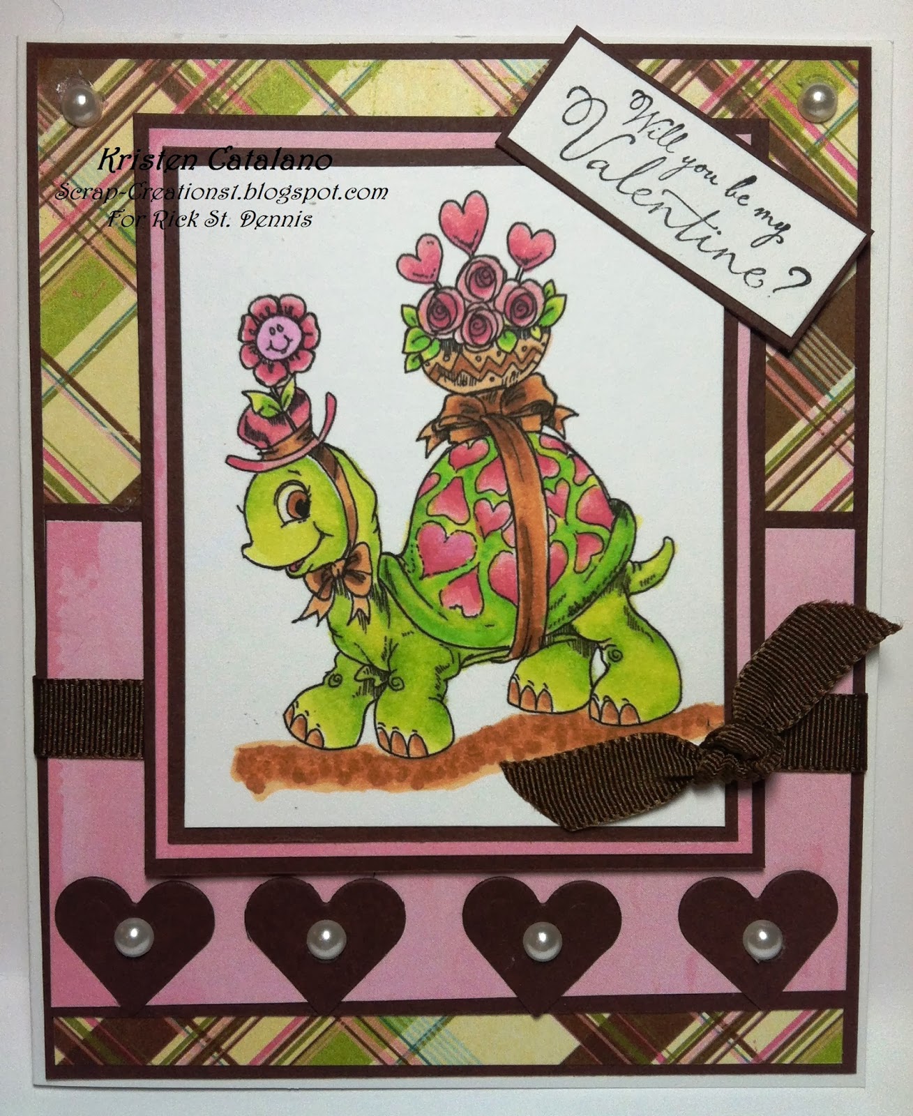 For my project this week, I used this super sweet Valentines Turtle Digi stamp from Rick St Dennis. Isn't he cute???? I love him.... So what do you do to celebrate Valentines Day????